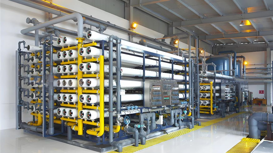 第三種:前處理與第二種方法一樣使用反滲透膜,區(qū)別在于后面使用的混床采用EDI連續(xù)除鹽膜塊代替,這樣就不需要酸堿再生樹脂,而是采用電再生模式。這就徹底使整個(gè)過程環(huán)保無污染,經(jīng)過處理后的水質(zhì)可達(dá)到15MΩ以上。該方法前期投入極大,但是整體的維護(hù)費(fèi)用卻極低,適合有著長足發(fā)展的企業(yè)。