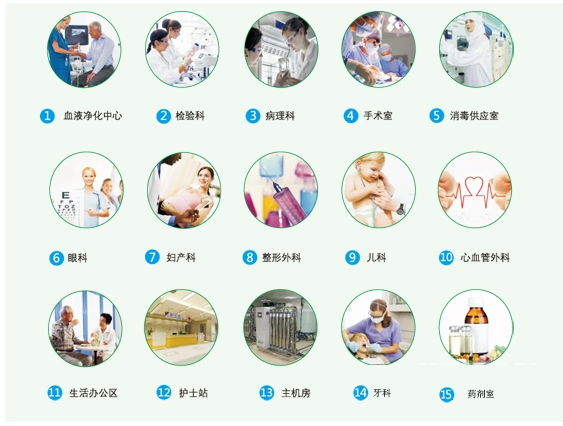 醫(yī)院大樓各科室有多種多樣不同的用水需求,方案可以根據不同的用水需求,配置標準不一的用水點,用以滿足醫(yī)院的集中管理和使用;