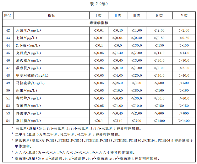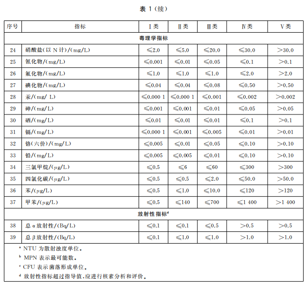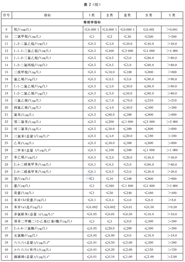 依據(jù)我國地下水質(zhì)量狀況和人體健康風(fēng)險,參照生活飲用水、工業(yè)、農(nóng)業(yè)等用水質(zhì)量要求,依據(jù)各組分含量高低(PH除外),分為五類。