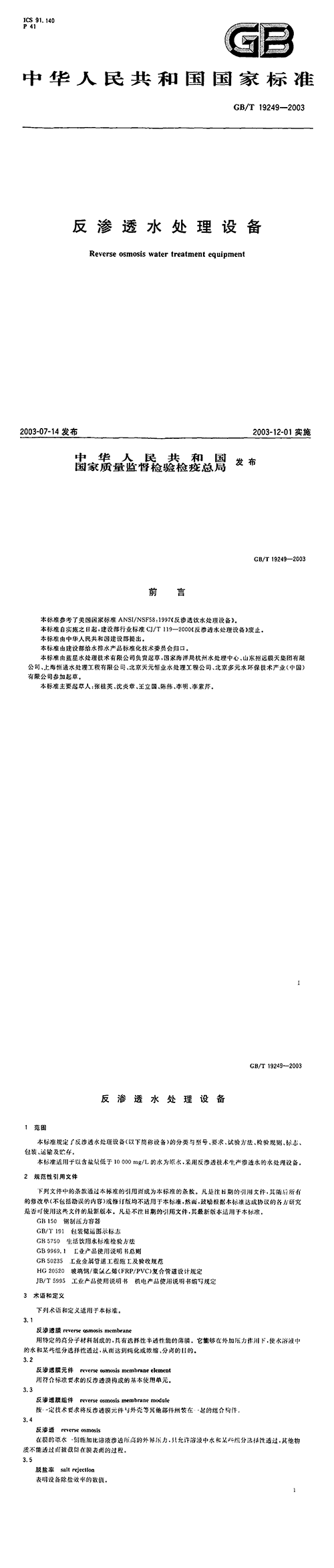 此文關(guān)鍵詞:GB/T19249-2003反滲透水處理設(shè)備