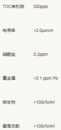 以口腔科為例,口腔科供水應(yīng)符合GB 5749要求,且滿足中國藥典GMP要求,應(yīng)當(dāng)使用軟化水,菌落總數(shù)≤100 CFU/mL、電導(dǎo)率<2.0μs/cm、TOC有機(jī)物≤500ppb、硝酸鹽≤0.2ppm、重金屬<0.1ppm,pb、微生物<100cfu/ml且不得不得檢出銅綠假單胞菌、沙門氏菌和大腸菌群。